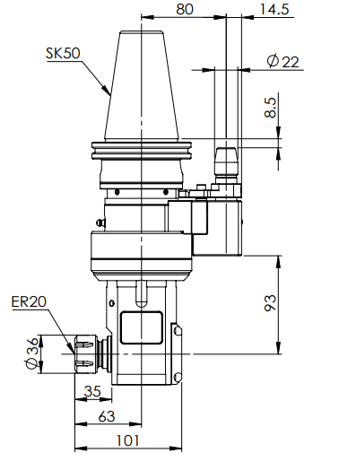 ◎?SK50-ER20 90° Angle Head-Compact (AHD Type)